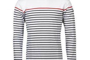 Armor Lux Marinière manches longues Armor Lux Bastien en coton blanc à rayures bleu nuit et une rayure rouge