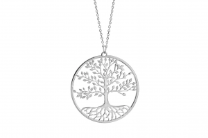 Collier en Argent rhodié chaîne avec pendentif rond et arbre de vie de vie découpé à l’intérieur – longueur 42cm + 3cm de rallonge