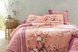Colombine Linge de lit Birdy en coton imprimé oiseaux – Taie D’oreiller Volant Plat : 65x65cm – Orange – Colombine – Vert – Size: Housse de couette 2 personnesonnes : 240x220cm