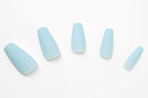 Faux ongles stiletto aux bouts carrés bleu mat pastel – Lot de 24