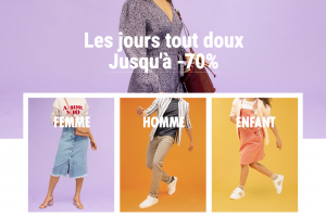 Les jours tout doux jusqu’à -70% Sarenza : mode femme homme et enfant