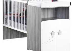 Lit bébé combiné évolutif 120×60 en 90×190 sérigraphié gris fumé Nao