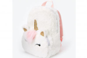 Petit sac à dos licorne en fausse fourrure Claire’s Club – Blanc