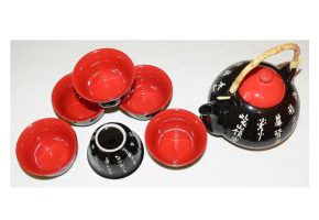 Service à Thé 8 Pièces Noir et Rouge “Calligraphies” Référence : 2084
