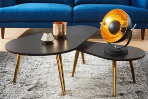 Tables basses gigognes ELMY – MDF & Métal doré – Noir