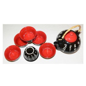 Service à Thé 8 Pièces Noir et Rouge “Calligraphies” Référence : 2084