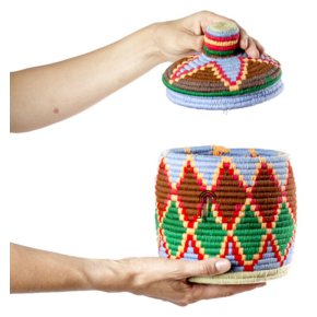 Boite vintage 12 cousue et tissée au fil de laine dans les tons bleu marrons et vert
